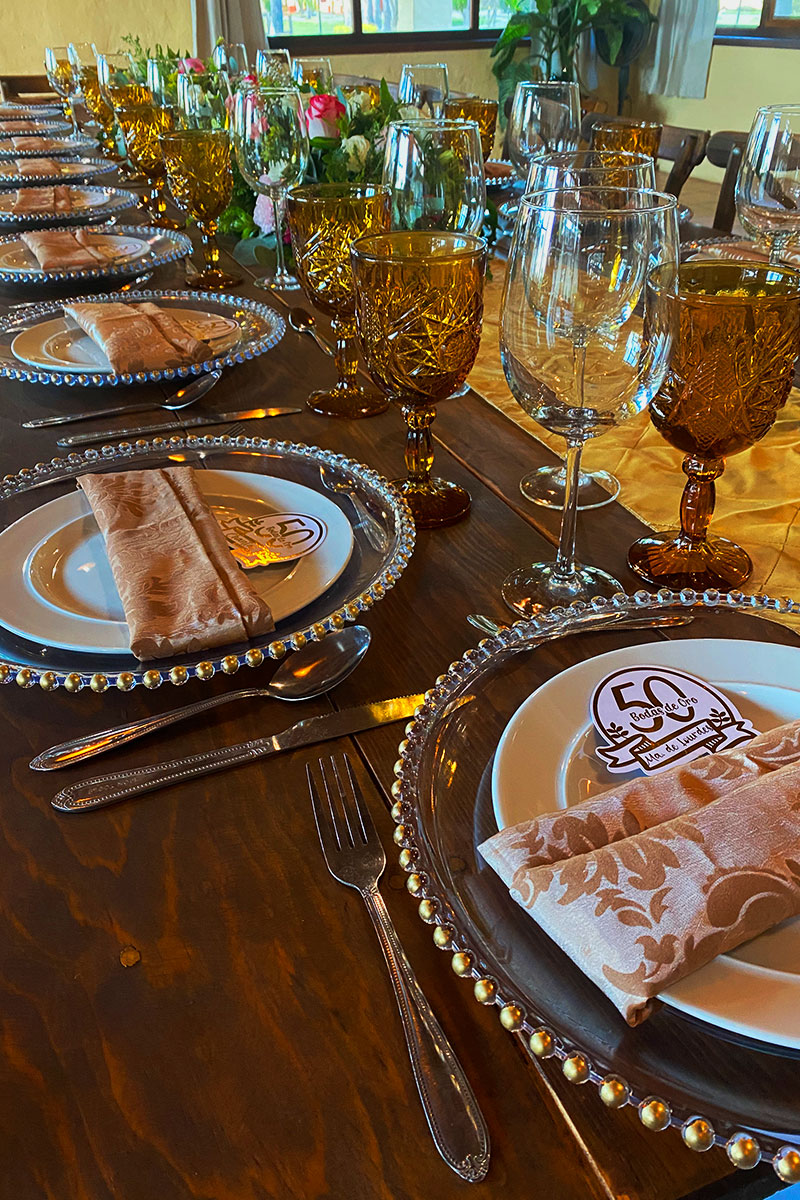 Servicios Planeación y coordinación Decoración floral Banquetes Renta de mobiliario Meseros Renta de mantelería Vajilla y cristalería DJ y pista Catering Otros